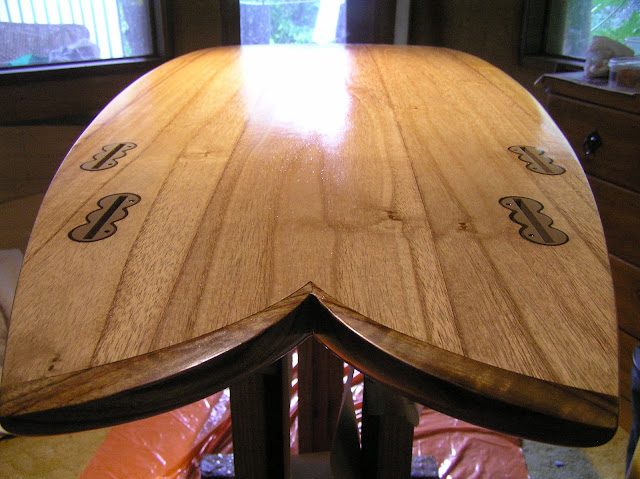 ReplyDeleteHi Ronald - Thanks mate. I used paulownia for everything except the spine - where I used plywood , reason being plywood does'nt bend - so the rocker curve stays stable - whereas paulownia has more flex & sometimes all the pressure of gluing on the skins causes the rocker to change - hope that makes sense. I used this rail method because it is the easiest way I could think of & also I don't have the tools to make bead & cove strips. All of the extra reinforcing was necessary (especially under the deck) because I did'nt fibreglass the finished board - havent had any problems with lack of strength or support. I live in Northern NSW & got the paulownia from a local plantation. If your thinking of building a board , there is no right or wrong way to build - everyone I know who has built one uses slightly different methods - the key is to think it through & be guided by your own logic & don't be afraid to make mistakes - they are always fixable . Good luck Craig